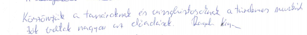 Az alábbiakban a teljesség igénye nélkül olvashatóak azok a visszajelzések, amiket tanulóink írtak. Minden észrevételt szívesen fogadunk a lukacsitunde@matrixoktatas.hu e-mail címre. Köszönjük!